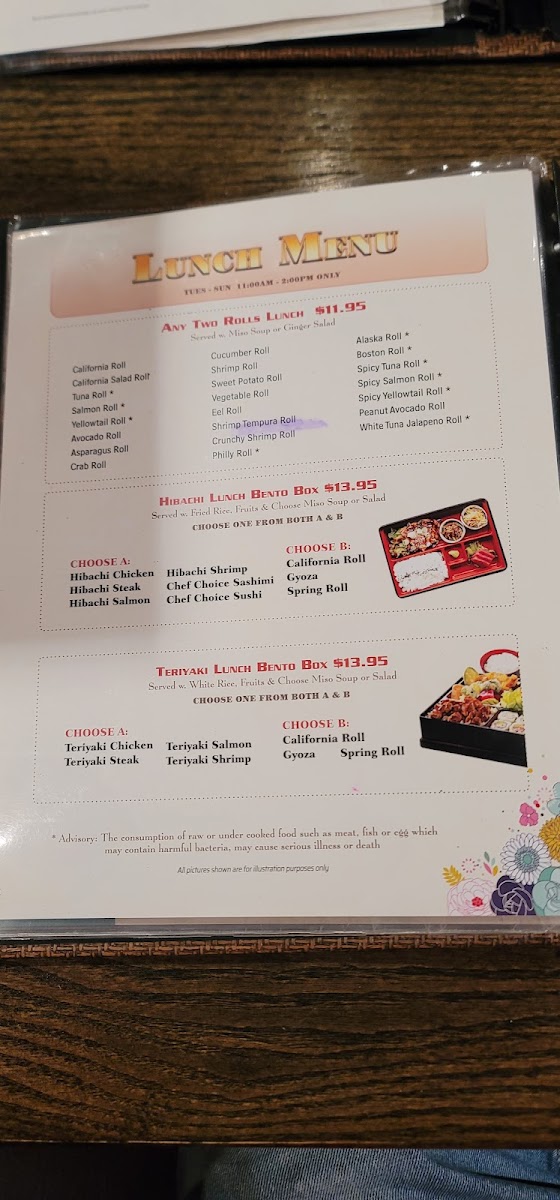 Advisory: The consumption of raw or undercooked food such as meat, fish, or egg which may contain harmful bacteria, may cause serious illness or death.