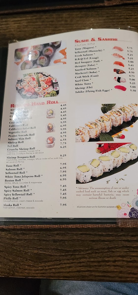The sushi experience is elevated through Sushi Bar Entrées such as Trio Maki Dinner, Sushi Deluxe, Sushi Regular, Sashimi Regular, and Sushi & Sashimi Combo, alongside Chef's Special Roll creations like Roll Tide Roll, Dynamite Roll, Auburn Tiger Roll, Yummy Yummy Roll, and Sunshine Roll. With thoughtful additions like the Lunch Menu, Kids Meal, Sushi Bar Appetizers, and practical Side Order options, Fuji’s menu ultimately feels complete, balanced, and satisfying-an excellent conclusion to a diverse Japanese dining experience.